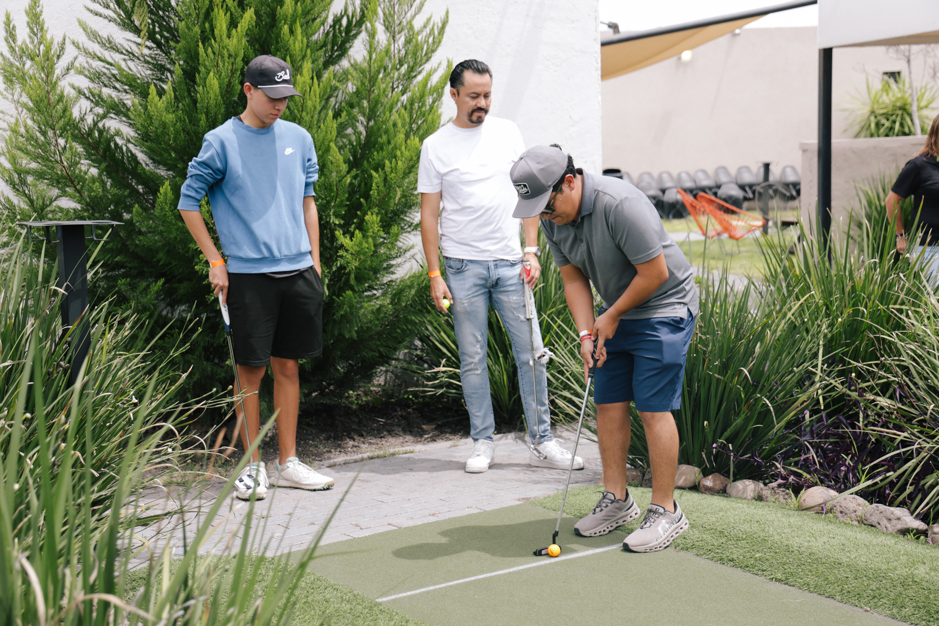 Además del golf, puedes disfrutar de alimentos, bebidas y áreas de minigolf, creando una experiencia completa para pasar la tarde o la noche con amigos, en pareja o en familia.